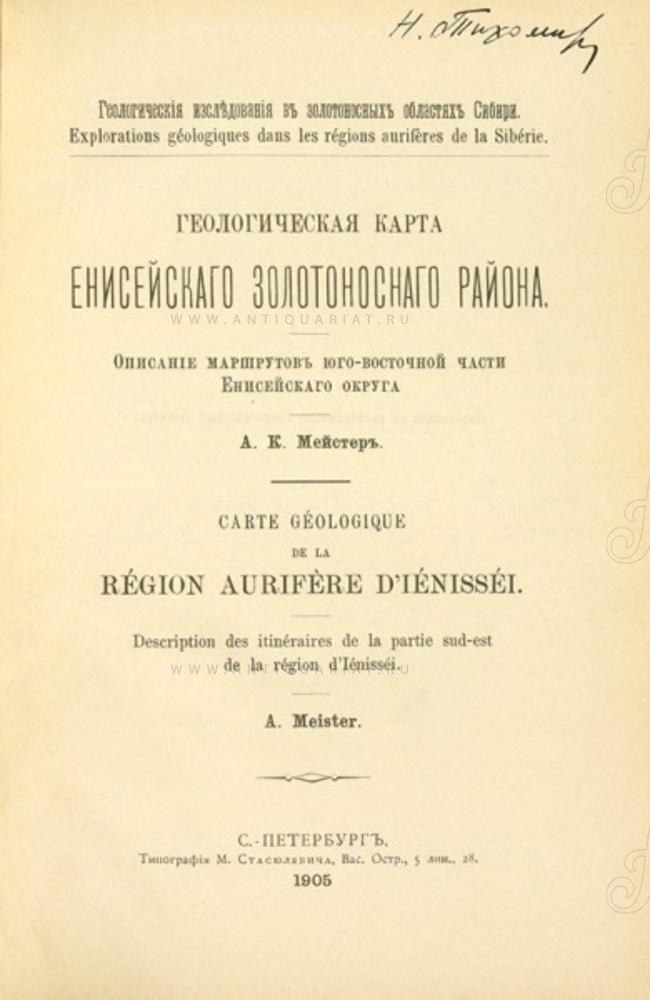"Геологическая карта Енисейского золотоносного района" А.К. Мейстер