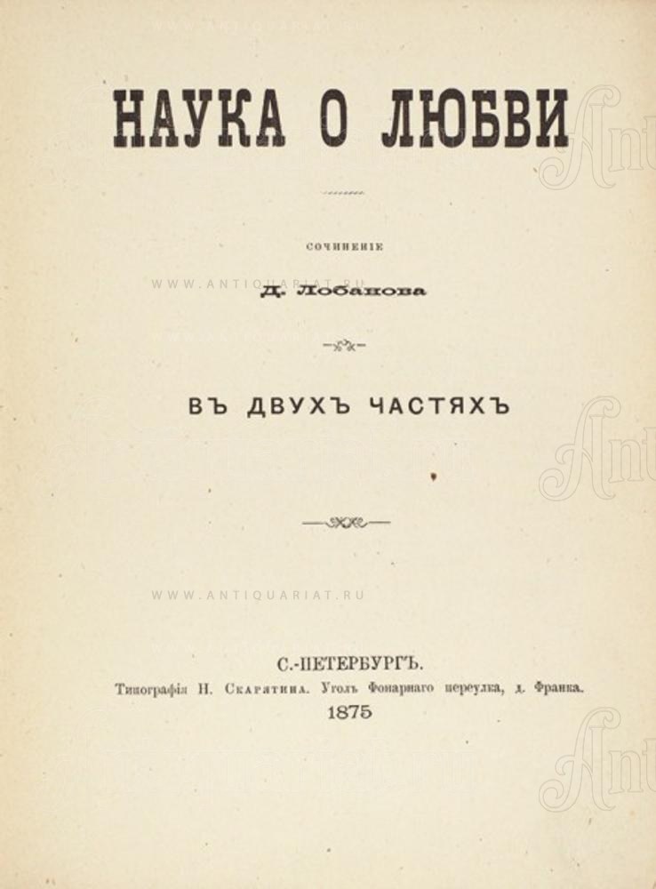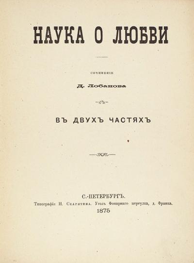[Из 25-ти «выживших» экземпляров уничтоженного тиража о «поцалуях» и других «актах». Библиографическая редкость] Лобанов, Д. Наука о любви.